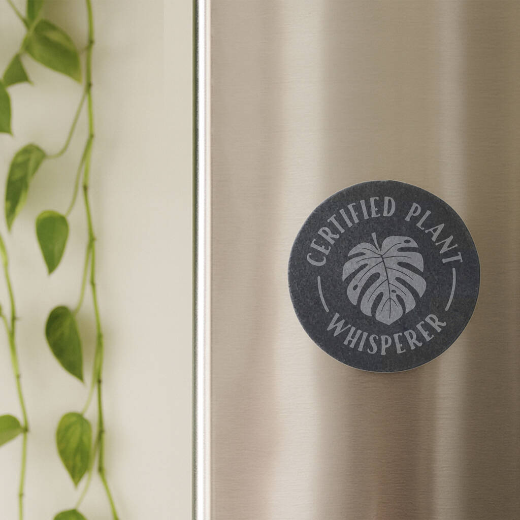 Round Slate Magnet 'Certified Plant Whisperer' | Home Decor | Fridge Magnet, 1 of 2
