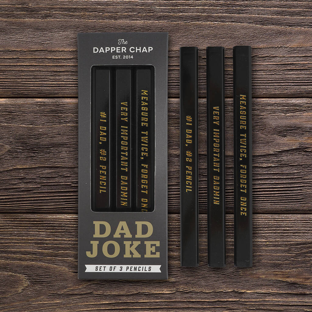 Set Of Three Pencils • 'Dad Joke' • Gift Box • Stationary • Dapper Chap • Gift For Him