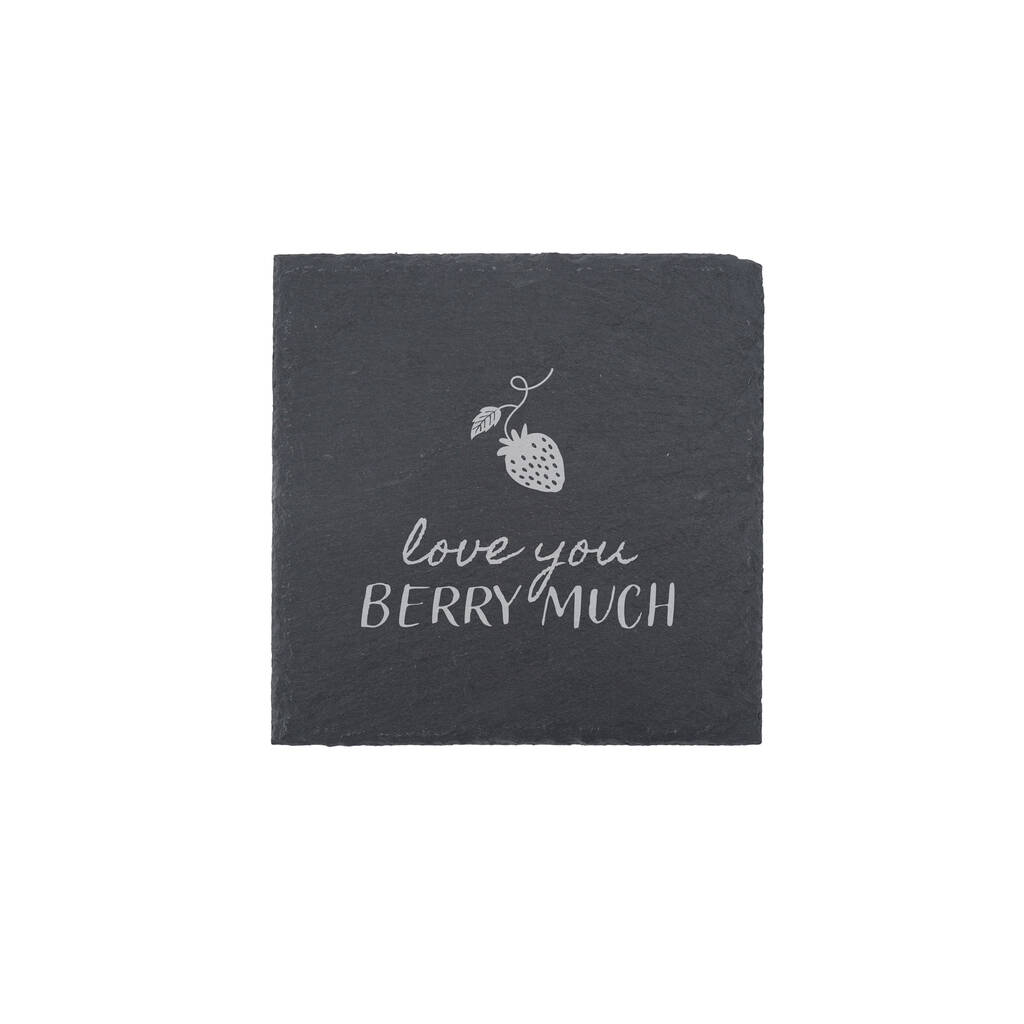Square Slate Coaster 'Love You Berry Much' | Garden Coaster | Shed | Home Decor