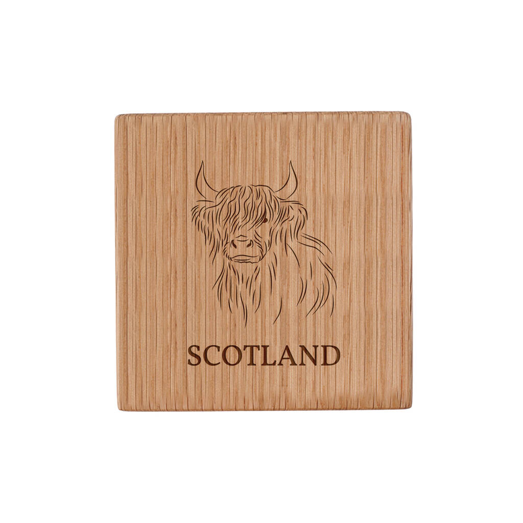 Celebrate Scotland’s rugged charm with this beautifully made square oak coaster, made from natural oak and finished to highlight the wood’s rich grain.