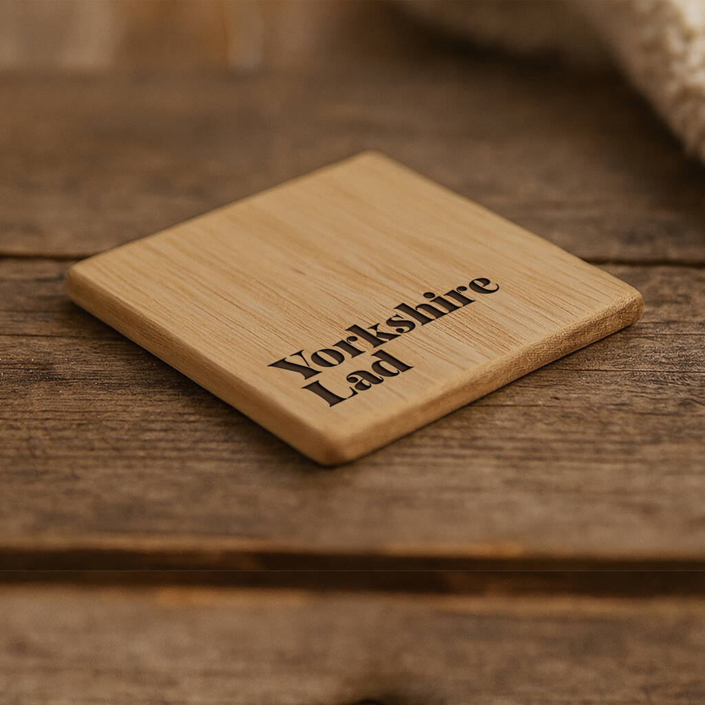 Show off your northern pride with our square oak coaster, engraved with the iconic up-north slogan “Yorkshire Lad.”