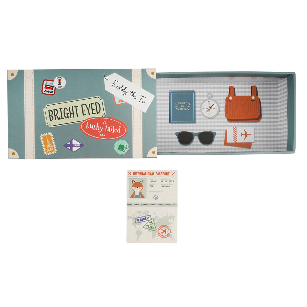 Freddy’s own pretend passport | A dedicated mini passport is included for imaginative journeys, complete with make-believe stamps from his travels.