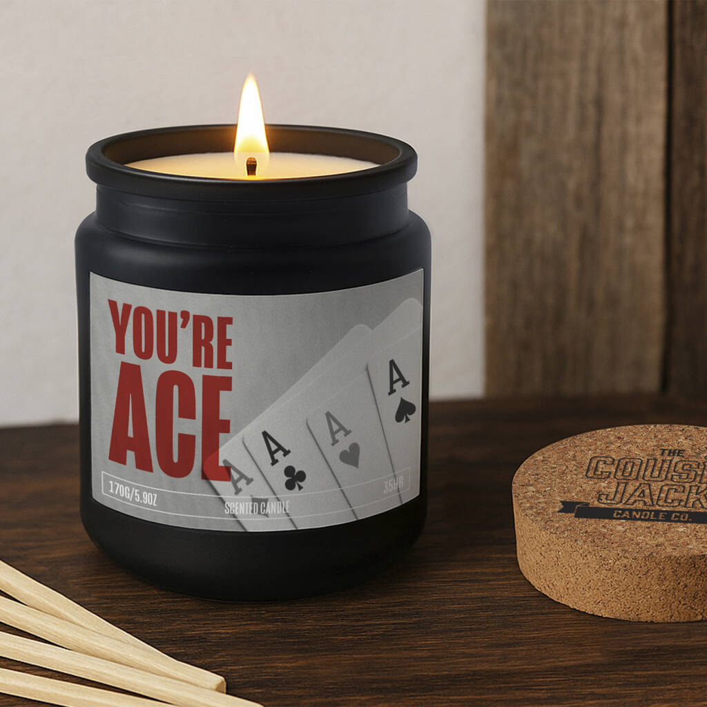 Slogan: “You’re Ace” - A bold, upbeat statement candle that says it simply and says it well. Straightforward, positive, and guaranteed to raise a smile.