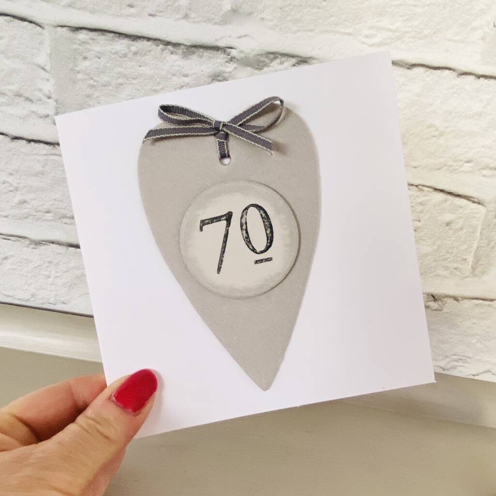 This lovely, simple handmade card has a large heart & 70 on the front.