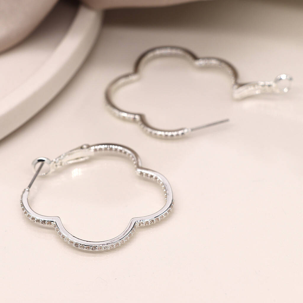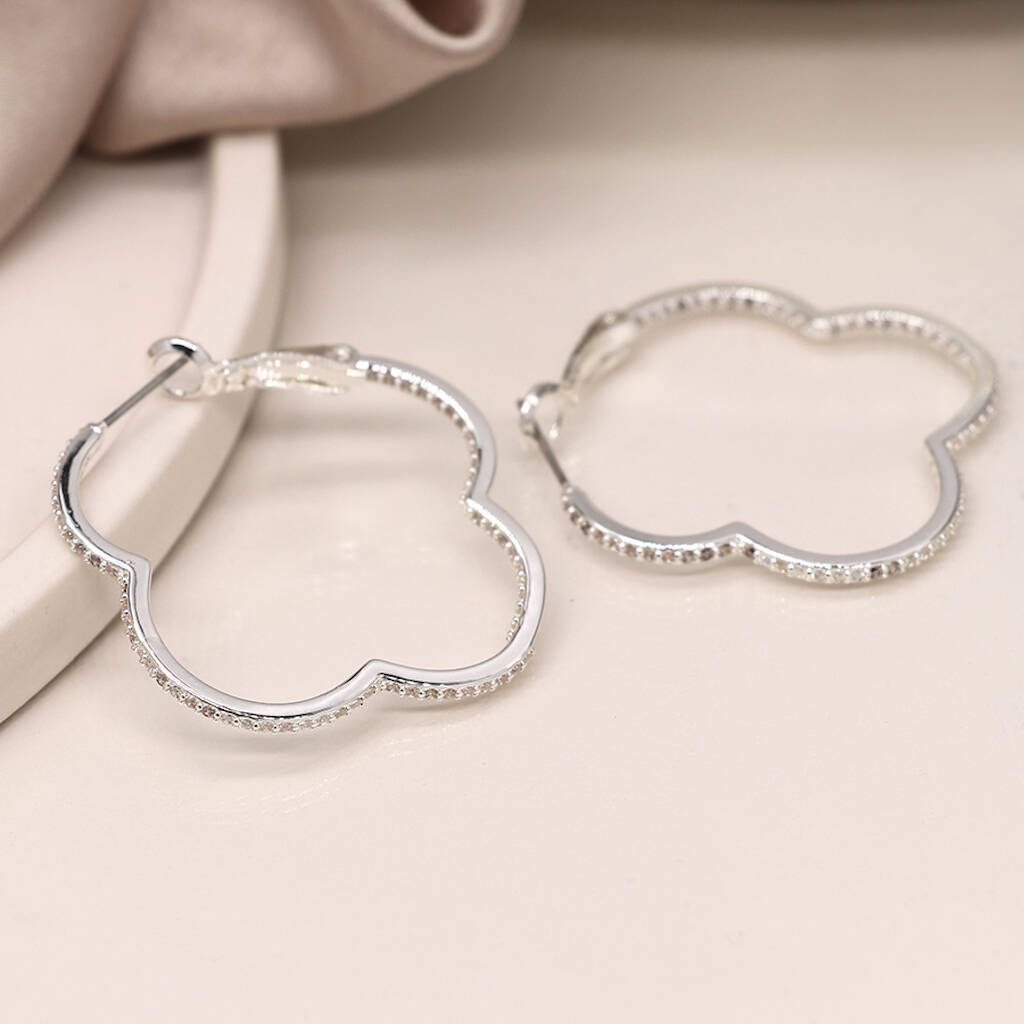 A gorgeous pair of large silver plated crystal hoop earrings.