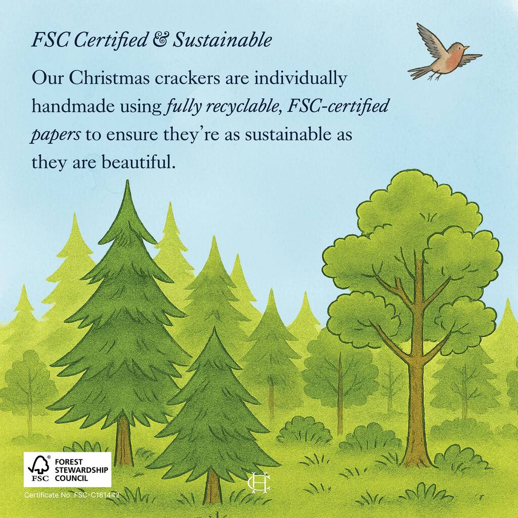 Each cracker is elegantly hand tied with a rich, deep red velvet ribbon, adding a touch of joy to your celebrations. Each individually handmade in our London studio!