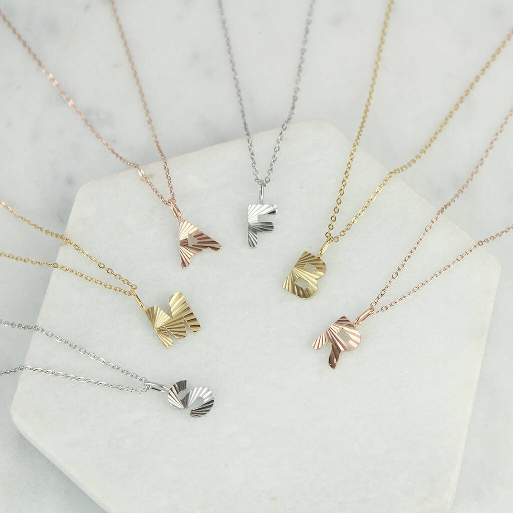 Art Deco Initial Necklace In Silver, Gold Or Rose Gold Colour