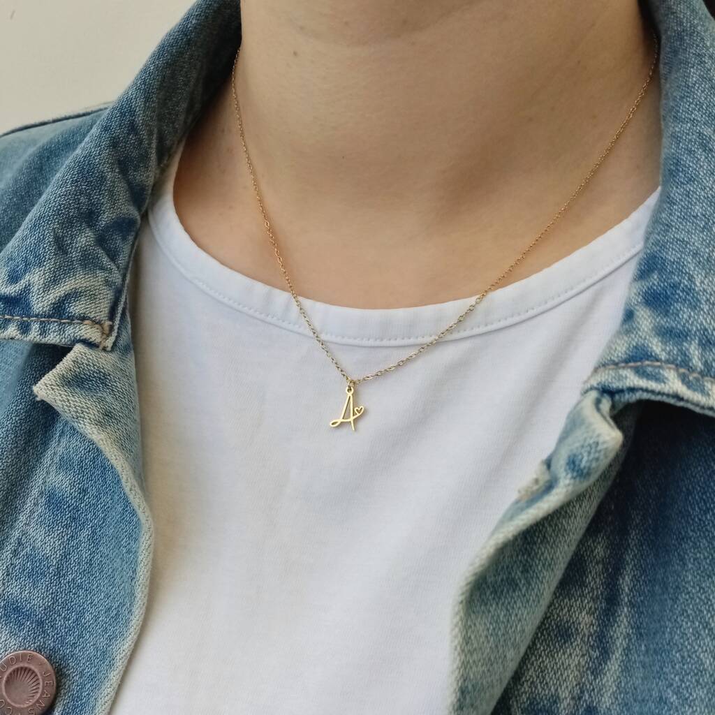 Heart Adorned Handwritten Initial Necklace