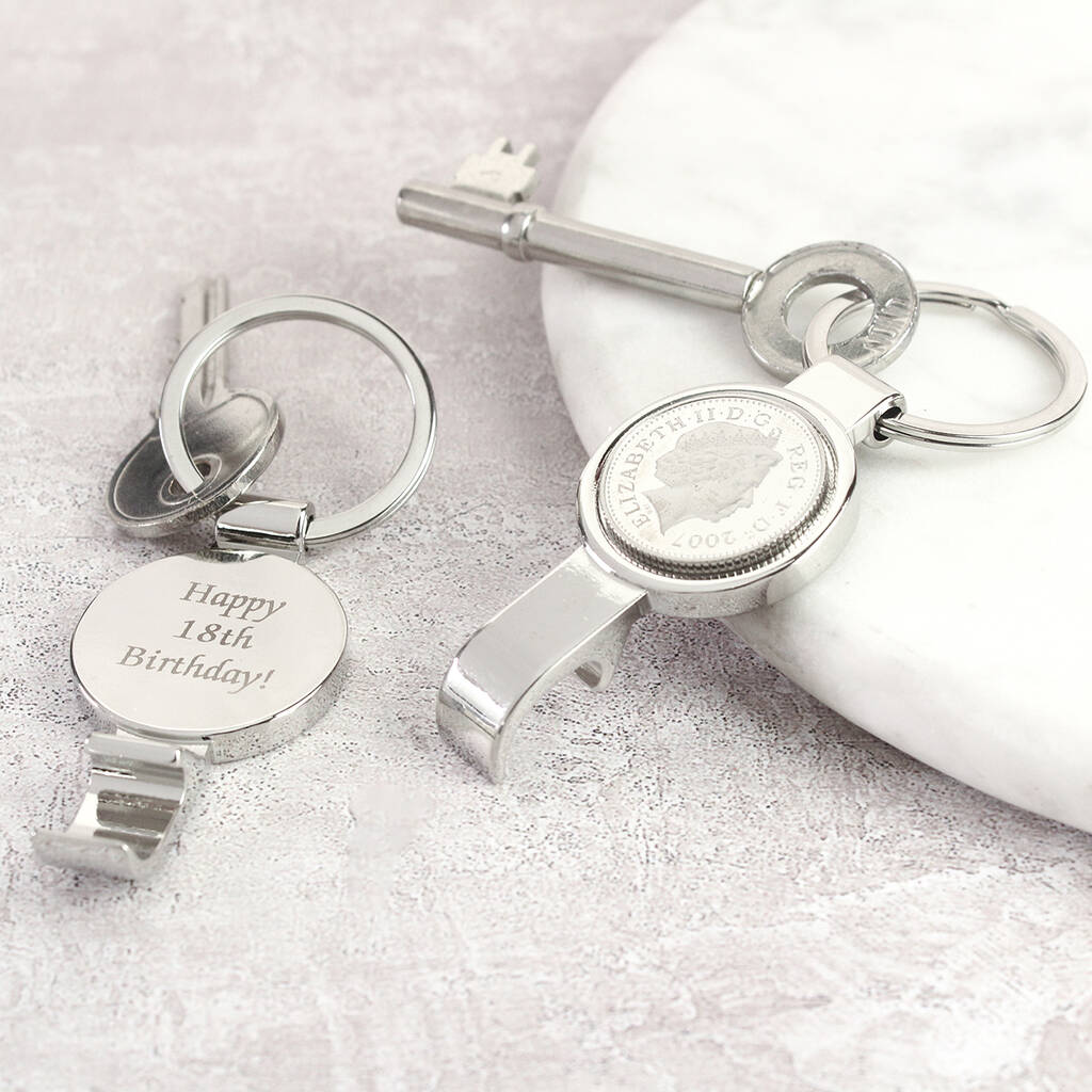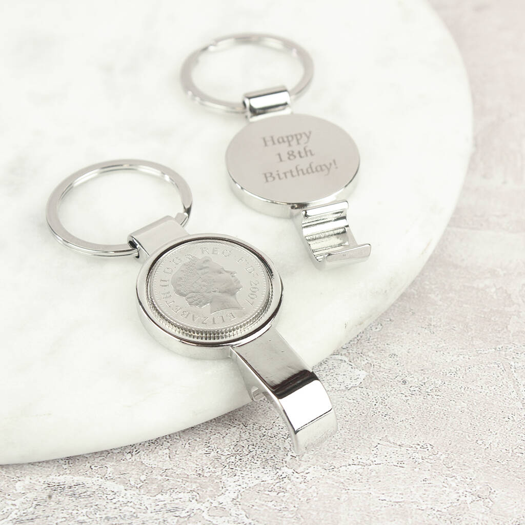 Personalised 18th Birthday Ten Pence Keyring Bottle Opener