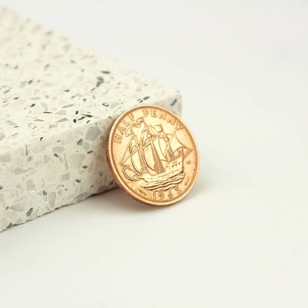 We are also offering a boxed and uncirculated (new) original 1965 halfpenny coin with a beautiful ship design. Please see last few photgraphs
