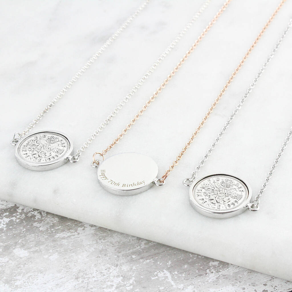 Personalised 70th Birthday Sixpence Necklace, 1 of 12