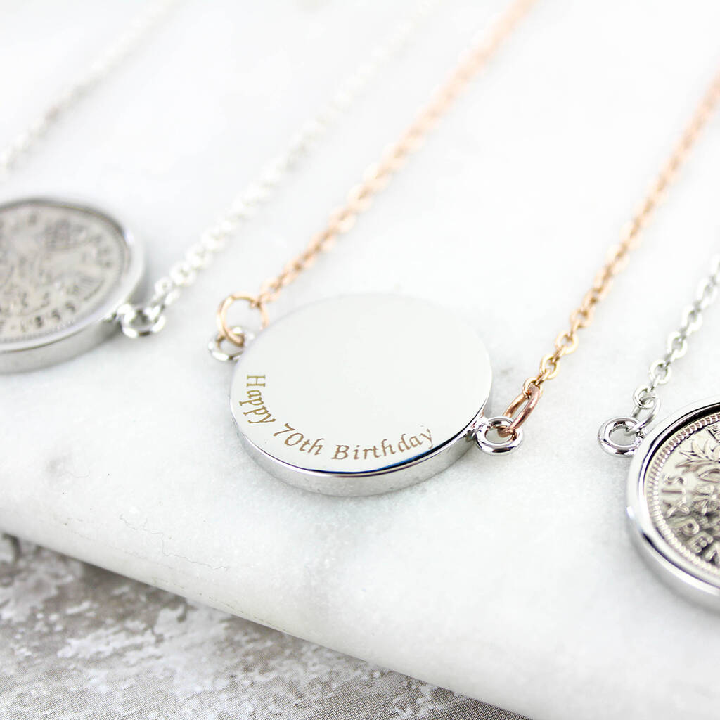 • Personalised 70th Birthday Sixpence Necklace, thumbnail 1 of 12