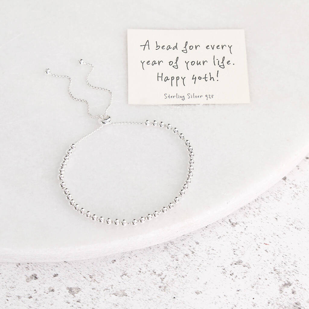 This 40th birthday bead bracelet is perfect for anyone celebrating the important milestone.