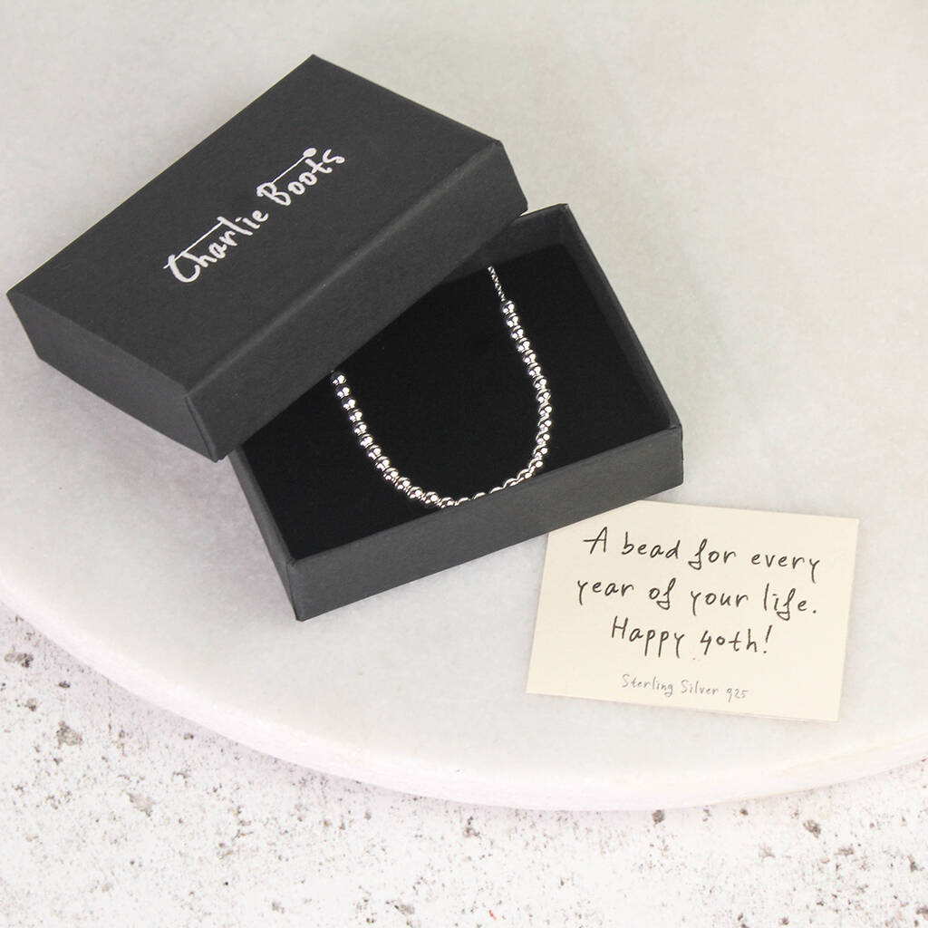 Sterling Silver 925 40th Birthday 40 Beads Bracelet