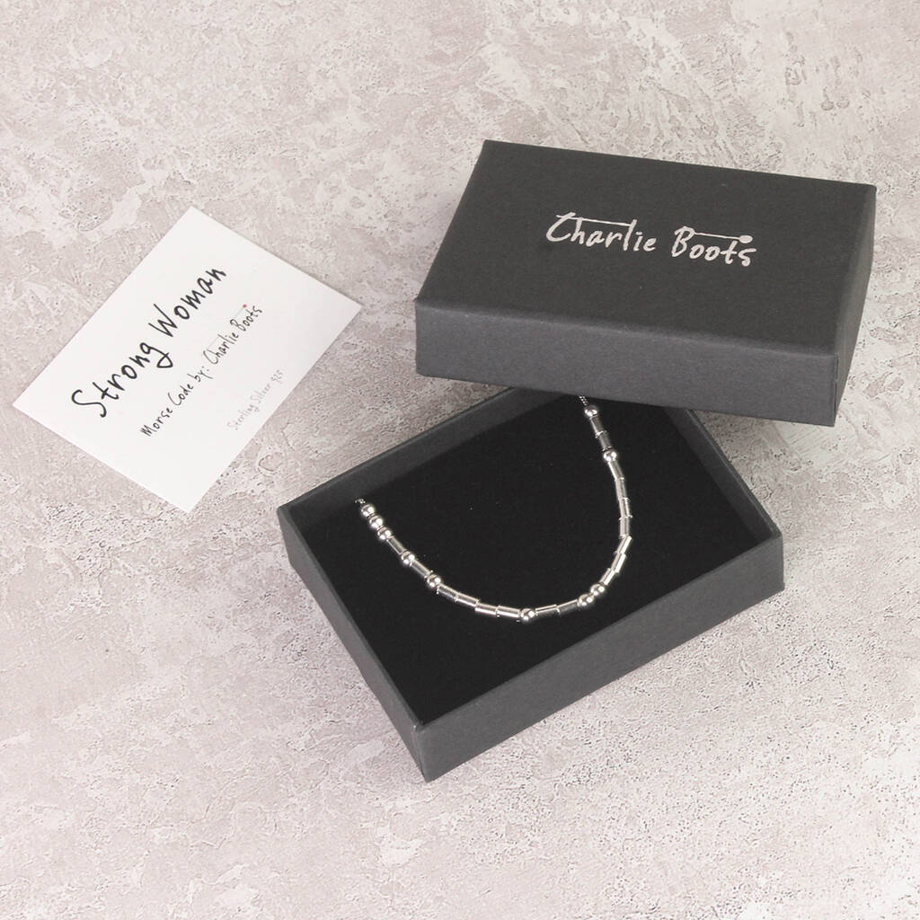 https://www.notonthehighstreet.com/charlieboots/product/strong-woman-sterling-silver-morse-code-chain-bracelet