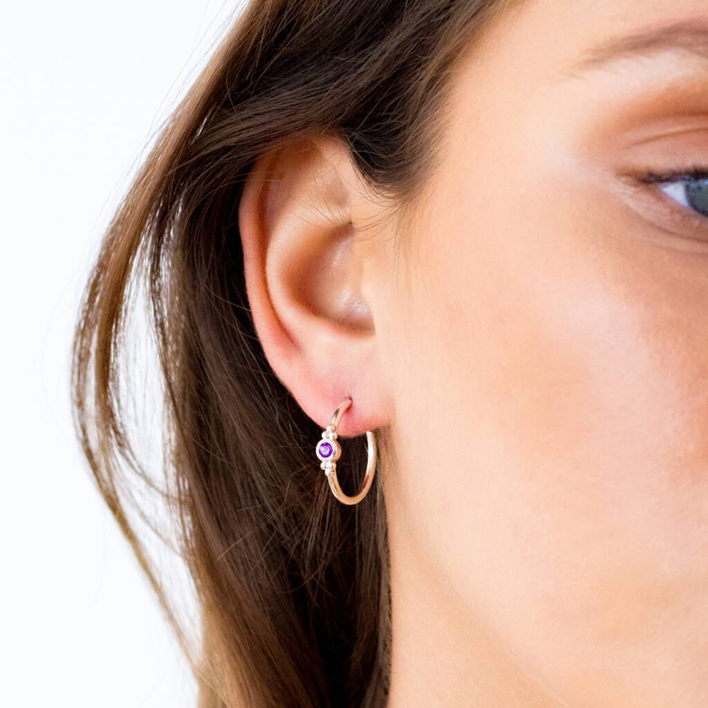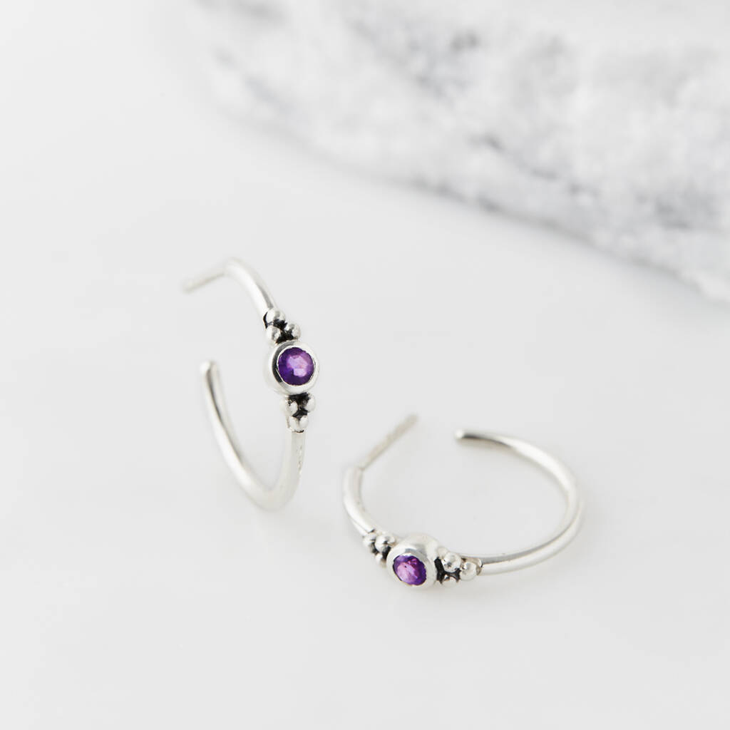 Holi Jewel Amethyst February Birthstone Sterling Silver Hoops