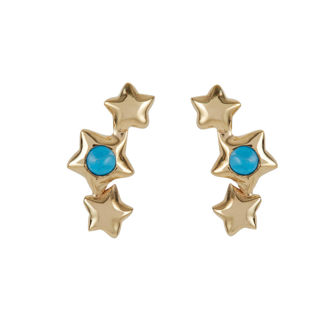 Our Orion turquoise star studs feature a trio of stars that climb the ear in a spectacular display of beauty. Embellished with turquoise a gemstone admired for its soothing qualities and healing properties, these unusual earrings are tactile and eye-catching in design. A timeless investment for your jewellery collection, these exquisite star studs will lend sophisticated sparkle to every ensemble. For work, play, and every day, they offer endless styling options.