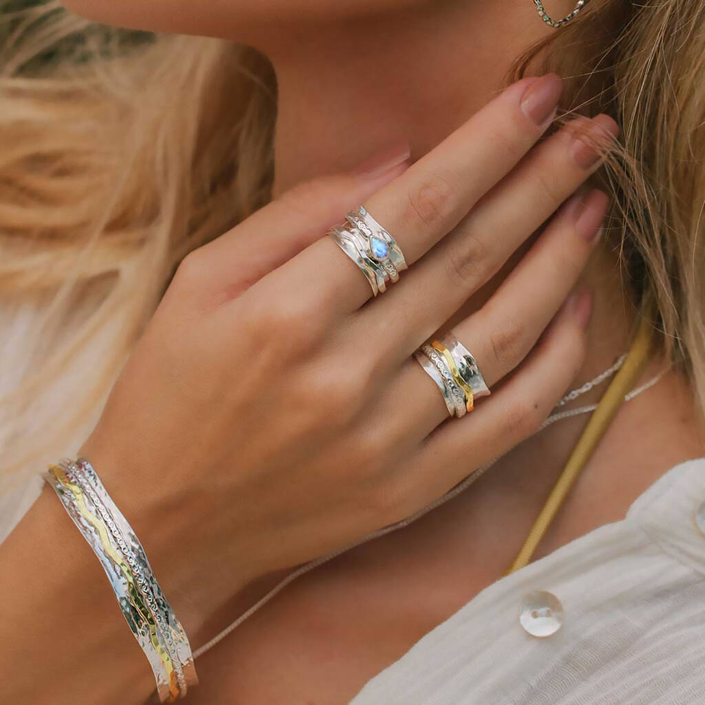 Experience the magic of personalised jewellery with our updated Aura Magic Spinning Ring, now available in mixed metals or all silver. Add a gemstone of your choice to harness its unique properties, from grounding to energising, while the soothing spinning motion invites moments of calm and clarity. Handcrafted from recycled silver, this mindful design blends beauty, intention, and serenity.