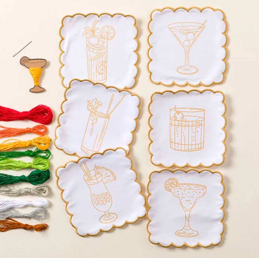 Each napkin features a different classic cocktail, and comes with 10 colour embroidery threads