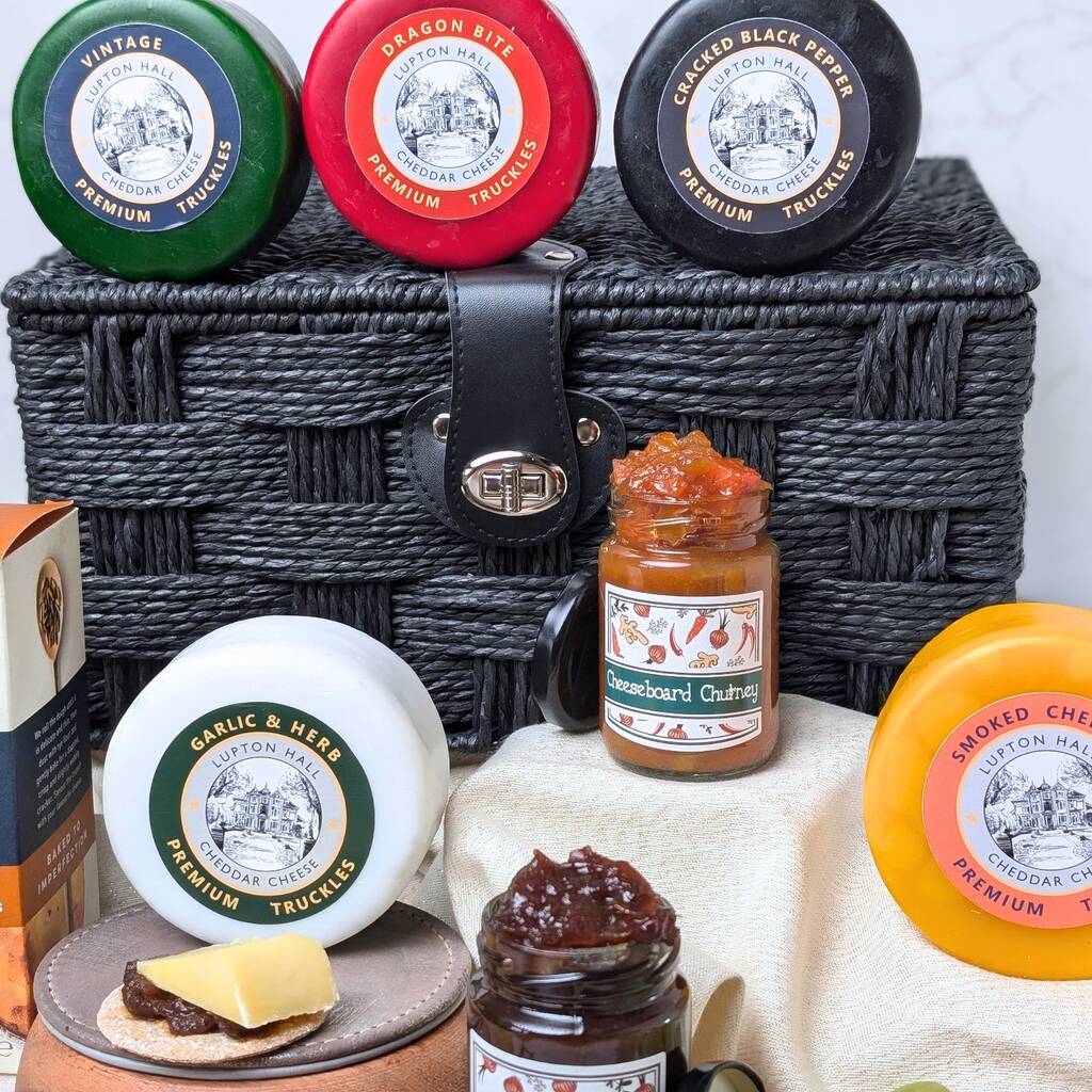 Cheese Hamper Basket With Cheese Chutney And Crackers