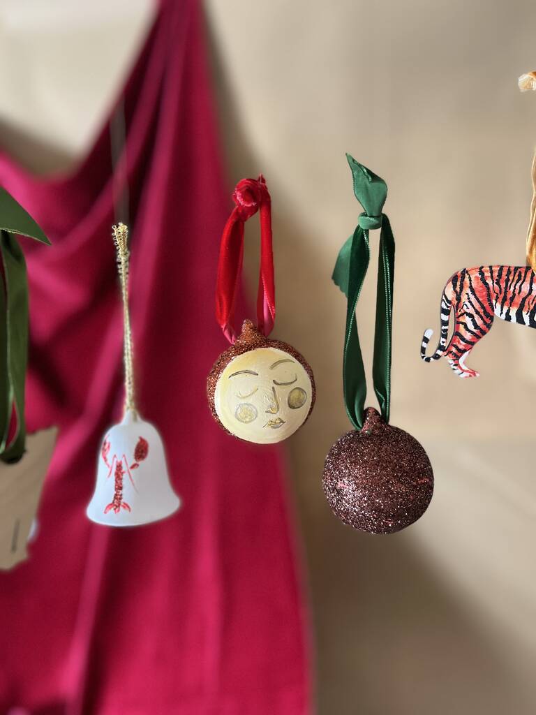 Inspired by traditional Victorian ornaments, these ceramic moon face baubles. Available in three colourways—copper with red, bronze with green, and chrome with navy—they combine vintage charm with simple elegance. Every bauble is painted by hand, so no two are quite the same.