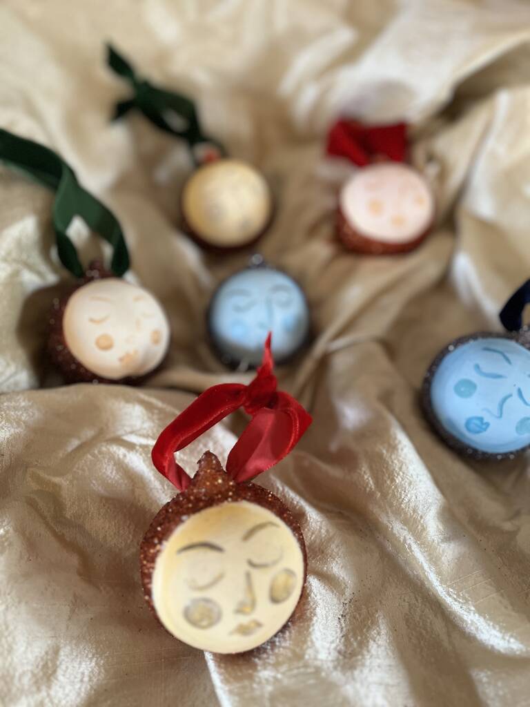 Each moon face bauble is painted entirely by hand, so there will be small differences in colour, brushwork, and glitter detail—part of what makes them special.