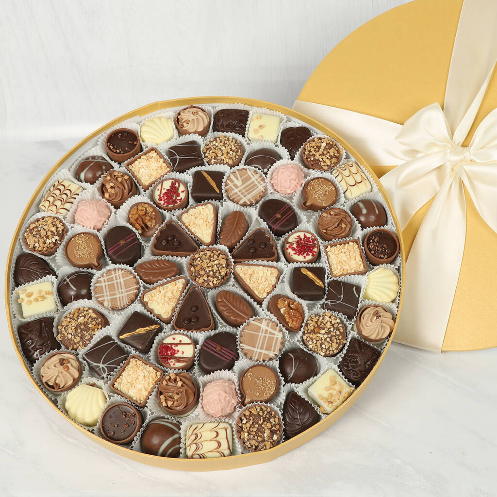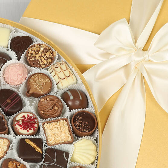 Ingredients: sugar, cocoa butter, cocoa mass, whole MILK powder, butter concentrate (MILK), skimmed MILK powder, WHEY powder (MILK), LACTOSE, MILK fat, butter oil (MILK), cocoa nibs, skimmed cocoa powder, whole MILK, HAZELNUTS, PECAN NUTS, WALNUTS, pea protein, blackberry, raspberry, Marc de Champagne, Rum, glucose-fructose syrup, dextrose, invertase, glucose syrup, invert sugar syrup, vegetable oils & fats: coconut, palm kernel, palm (responsibly sourced), rapeseed, sunflower, shea, coleseed, coffee, WHEAT flour, WHEAT starch, WHEAT malt, rice flour, BARLEY malt (GLUTEN), concentrate: pepper, blueberry, beetroot extract, emulsifier: SOYA lecithin, sunflower lecithin, natural flavouring: vanilla, WALNUT, vanilla bean powder, cinnamon, ALMOND, orange, lemon, alcohol, flavouring: (NUTS), Sea Salt, raspberry pulp, acidity regulator: E330, E331, vanilla extract, thickener: E414, E1422, preservative: E202, glazing agent: E904, anti caking agent: E555, stabiliser: E339, E440, E422, E420, raising agent: E500, E500ii, E503, E503, colours: E141i, E171, E172, salt, nutmeg, cardamon, Plain chocolate contains: cocoa solids 51% min. Milk chocolate contains: cocoa solids 30% min, milk solids 20% min. White chocolate contains: cocoa solids 22.7% min, milk solids 23.7% min. May contain traces of: EGG and other NUTS. Allergen advice: See ingredients in CAPITALS.
