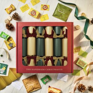 Six Handmade Christmas Crackers Shimmering Green Gold Design