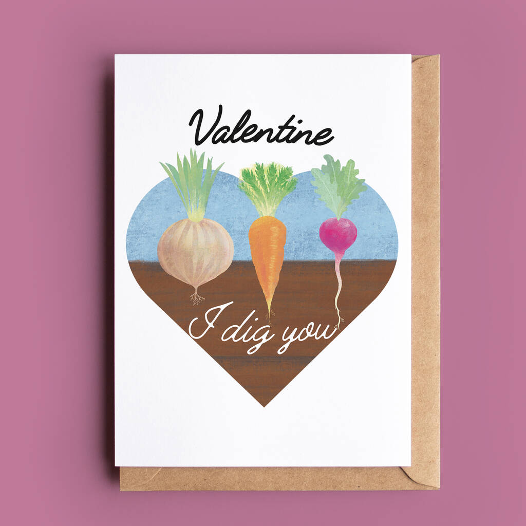 Make your Valentine smile with this charming message "Valentine, I dig you"