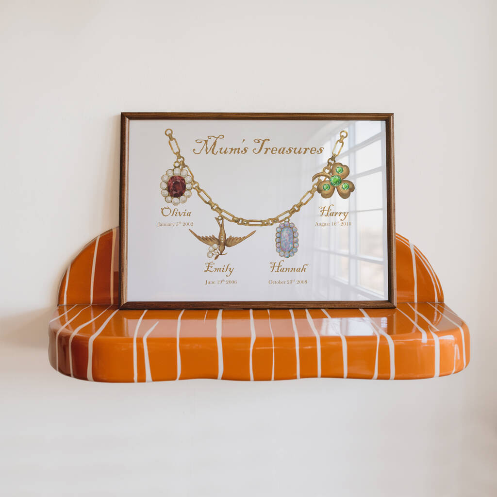 Mum's Treasures Charm Bracelet Birth Stones Print