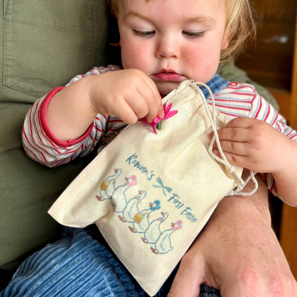 This attractive Easter gift bag is illustrated with a cheerful row of Easter ducks with bonnets, baskets and bows. Each bag comes with the seeds of your choice, and has Baby's name across the front, along with the words "My 1st Easter".