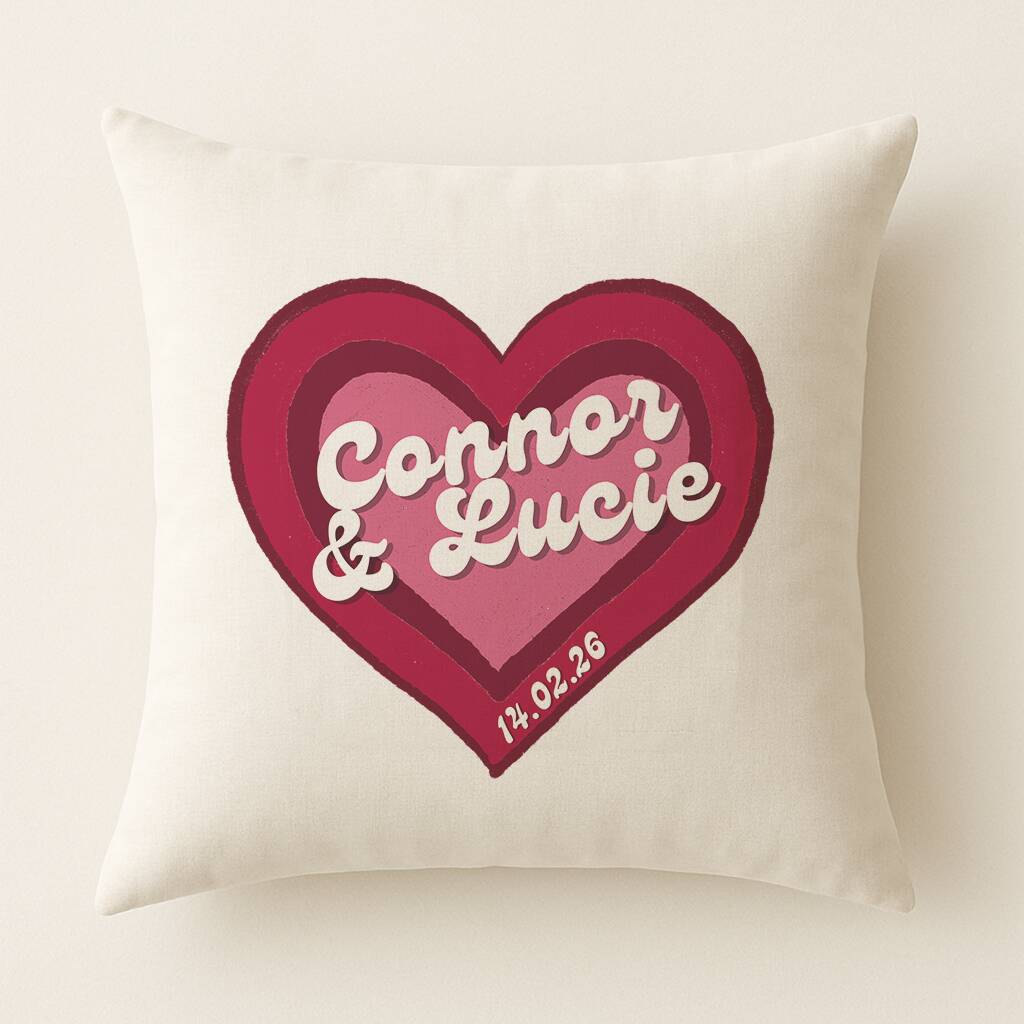 Personalised Retro Heart Couple's Cushion