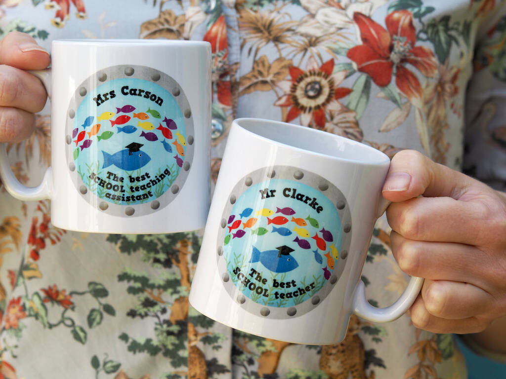 'Rainbow School Of Fish' Personalised Teacher Mug