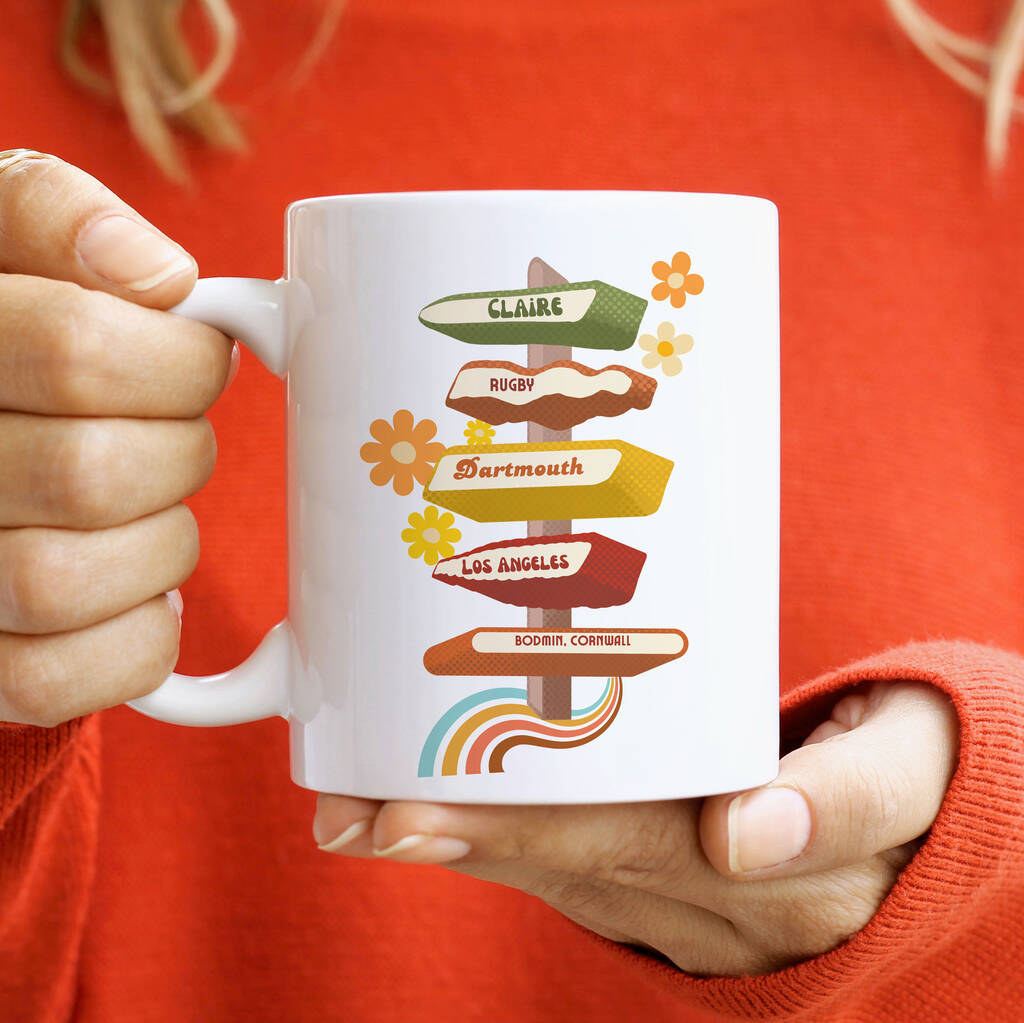 Retro Sixties Signpost Personalised Mug Gift For Her