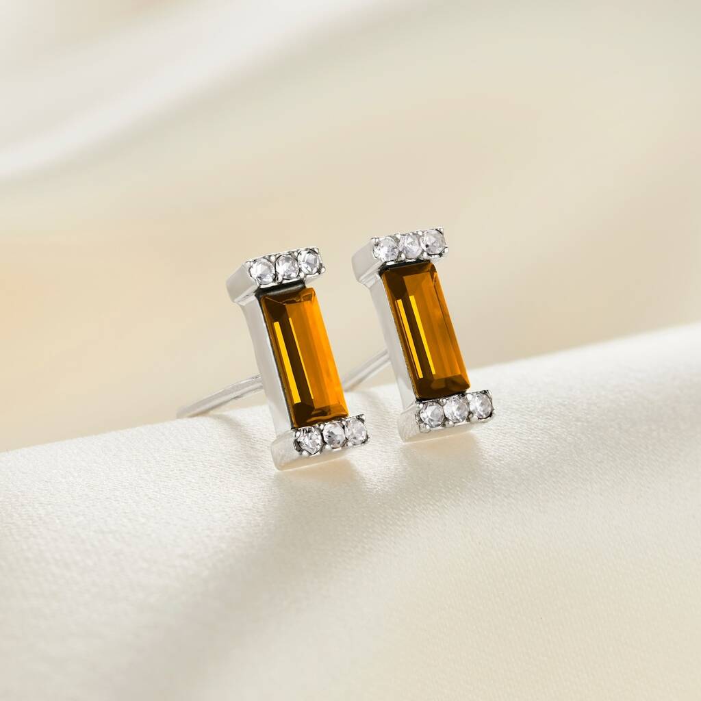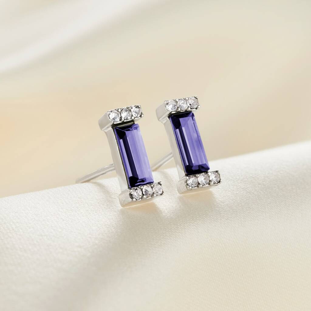These beautiful sterling silver birthstone stud earrings feature a baguette cut Swarovski crystal in the colour and month of your choice