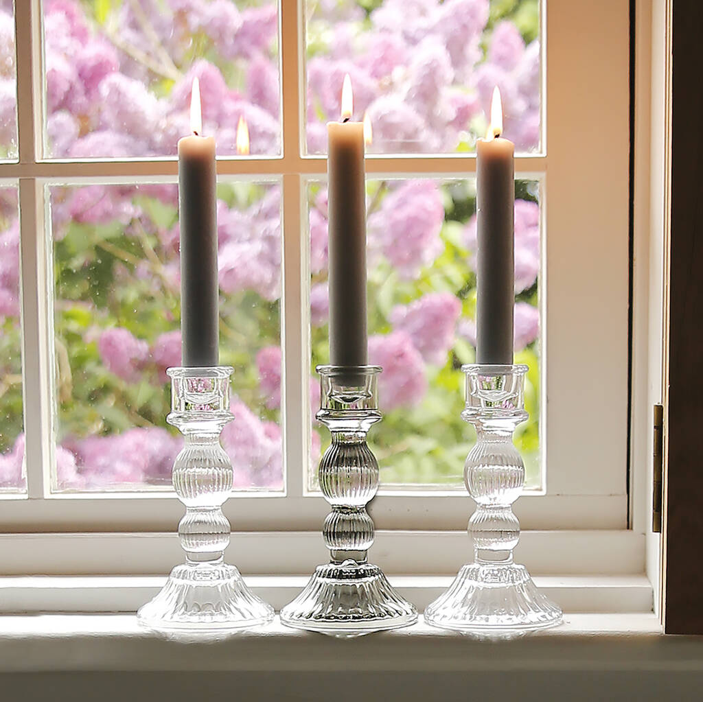 Lined Glass Candlestick Holder