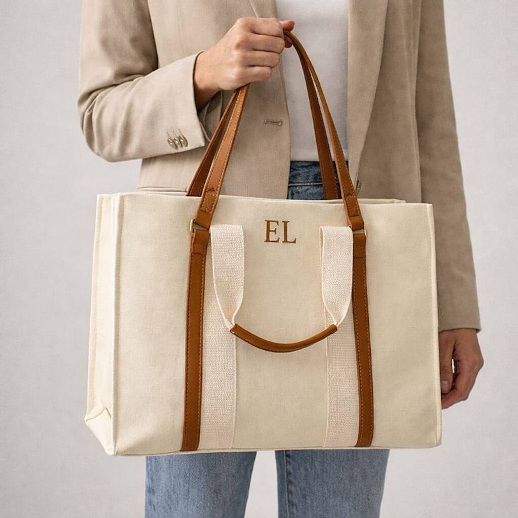 Personalised Evelyn Canvas Double Strap Shoulder Tote Bag Handbag