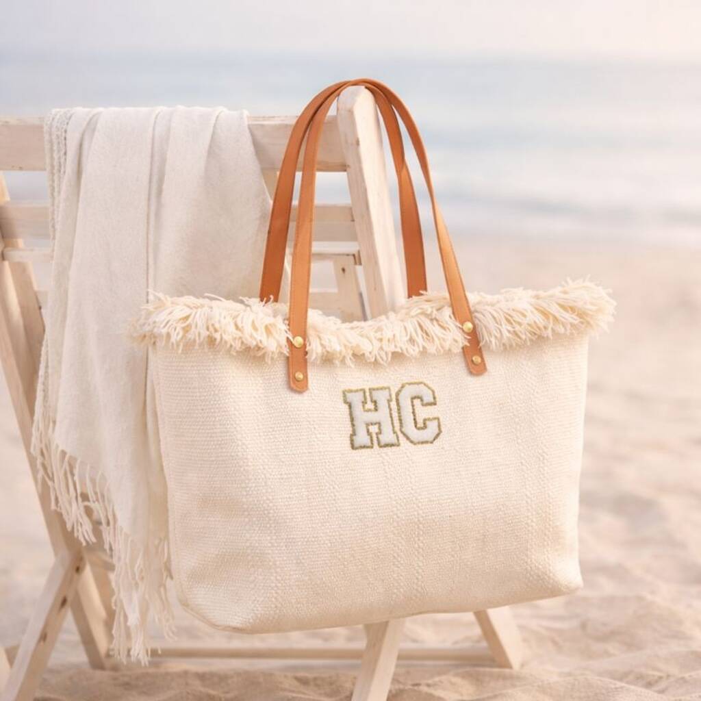 Personalised Hetty Solid Colour Straw Fringe Shoulder Tote Beach Bag