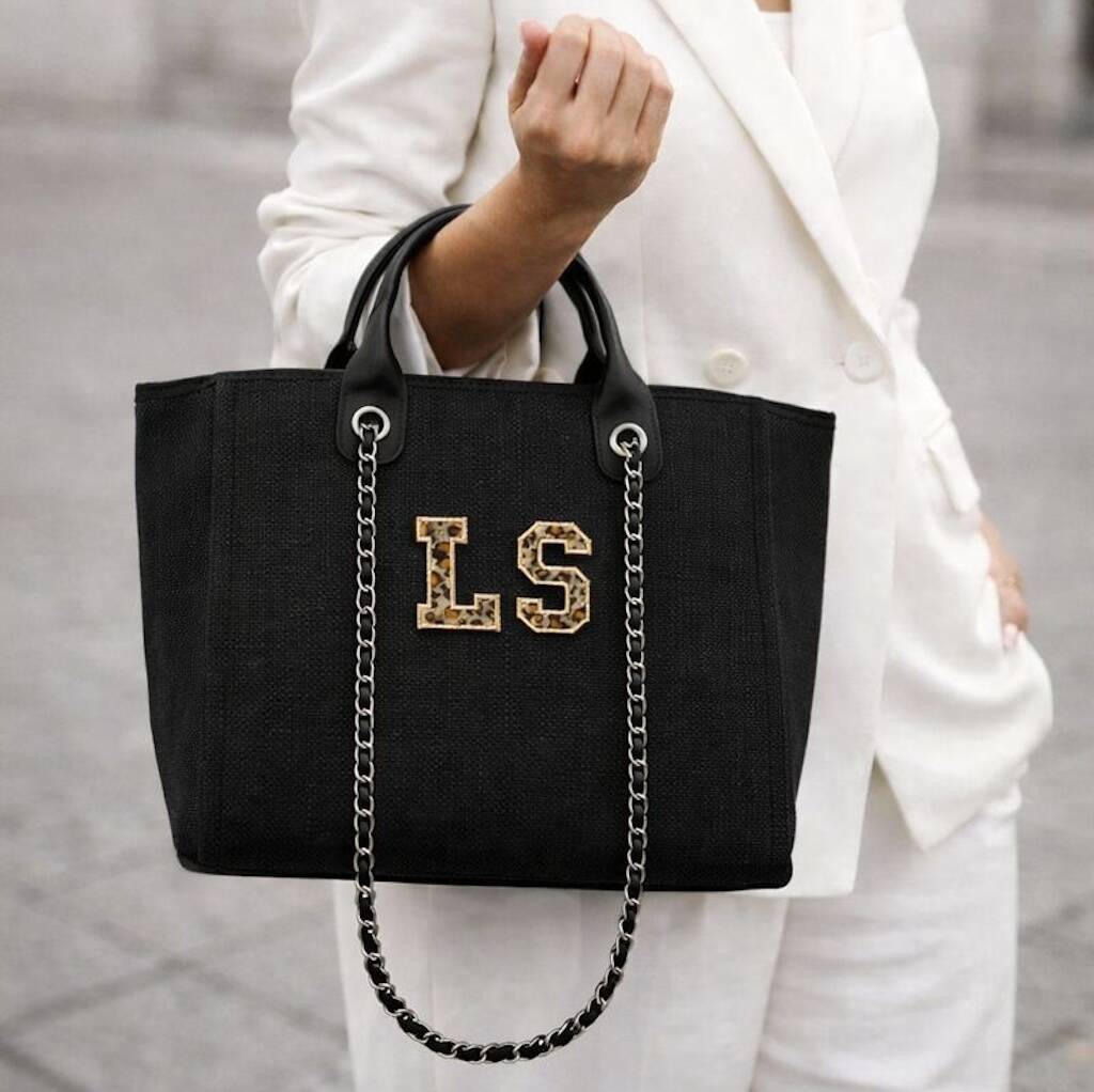 Personalised Leopard Print Patch Chain Large Initial Tote Bags