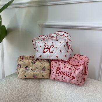 Personalised Ruffle Embroidered Makeup Cosmetic Bag