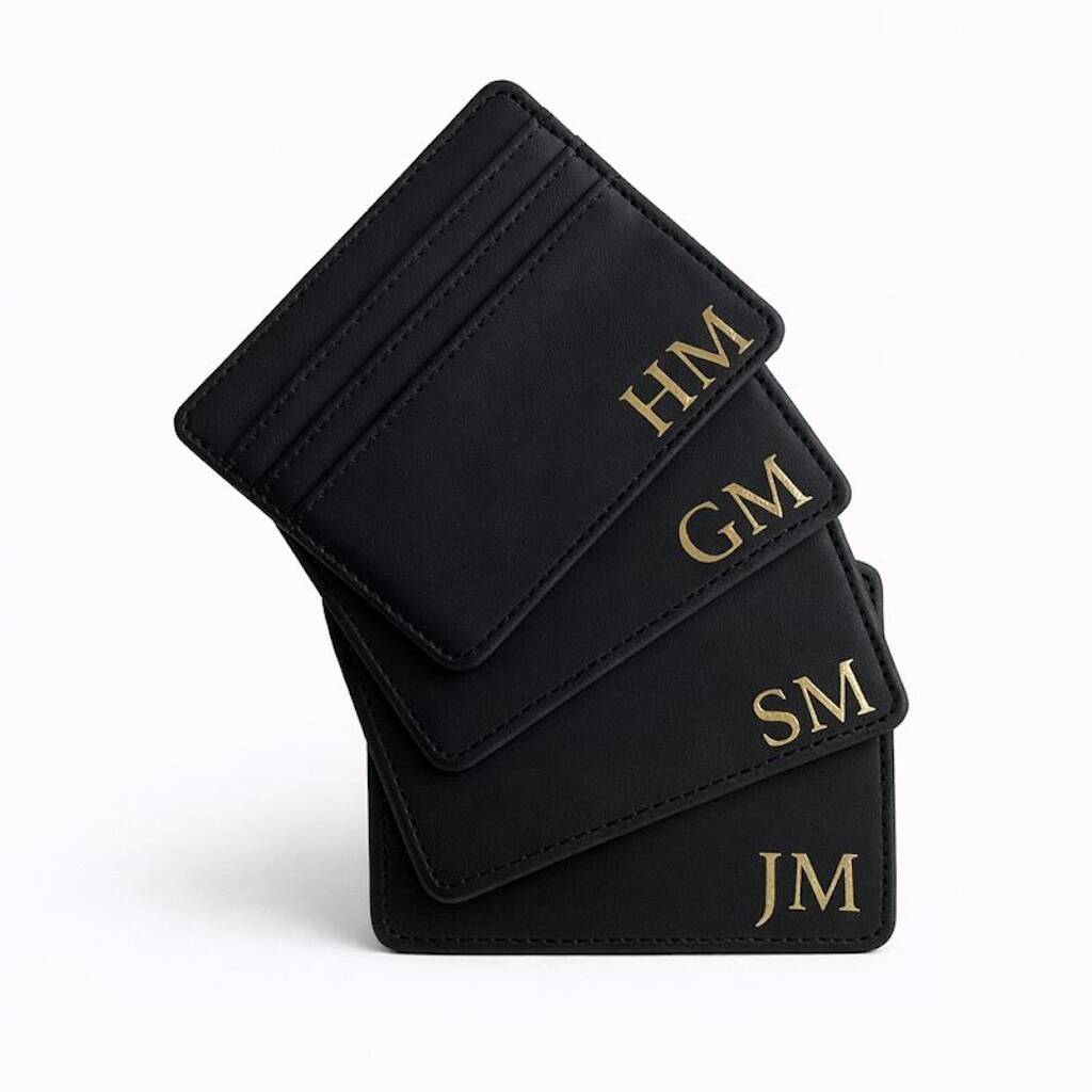 Personalised Smooth Black Unisex Faux Leather Card Holder