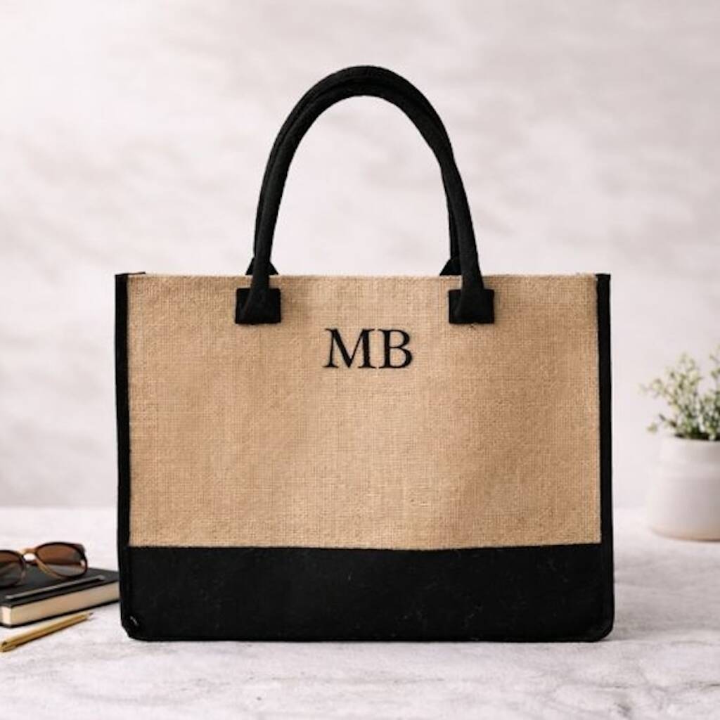 Personalised Square Jute Panel Shoulder Beach Shopper Tote Bag