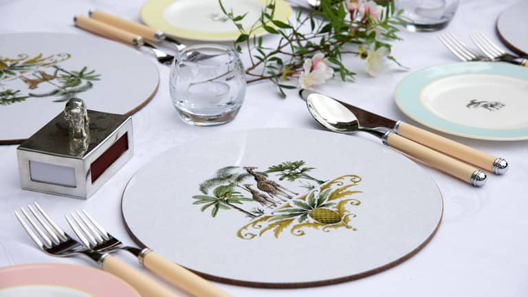 Unusually creative and exceptionally smart, we commission our hand-painted artwork from a team of talented artists. All our mats are handmade in England, melamine coated with either a gloss or matt finish and are created to withstand heat of up to 160 degrees. Mats are boxed in sets of four in our distinctive royal blue and pink edged boxes.