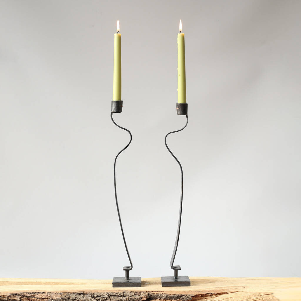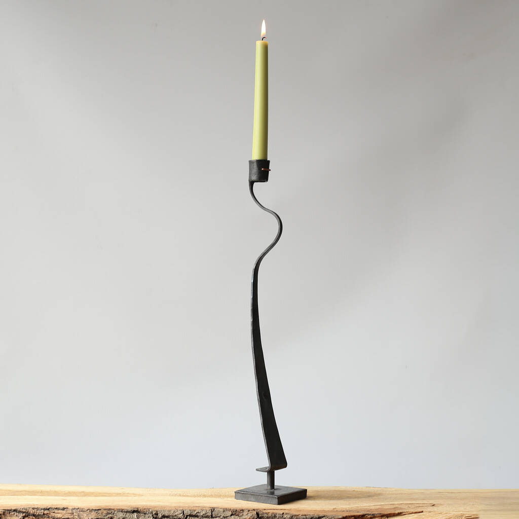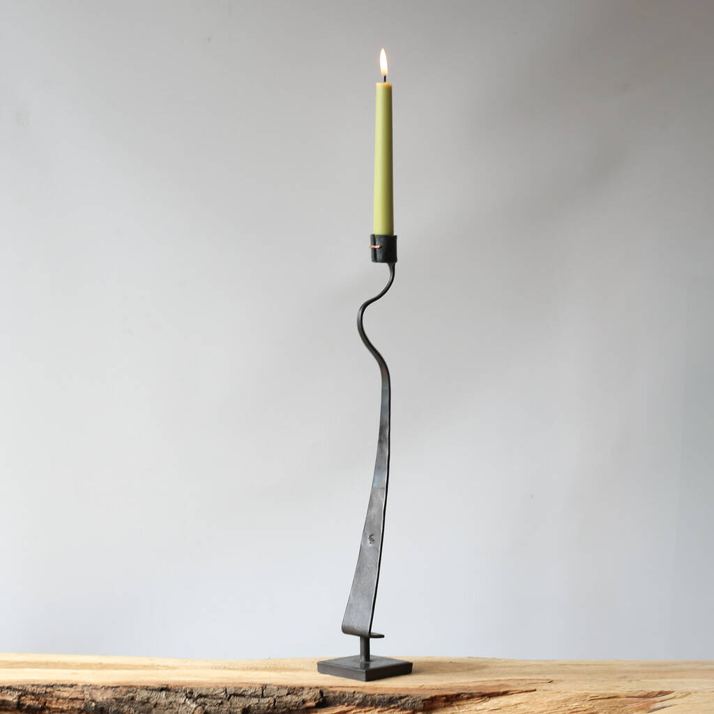 11th Anniversary Gift Tall Steel Elegant Taper Candle Holder. Hand Shaped Curved Handle Design