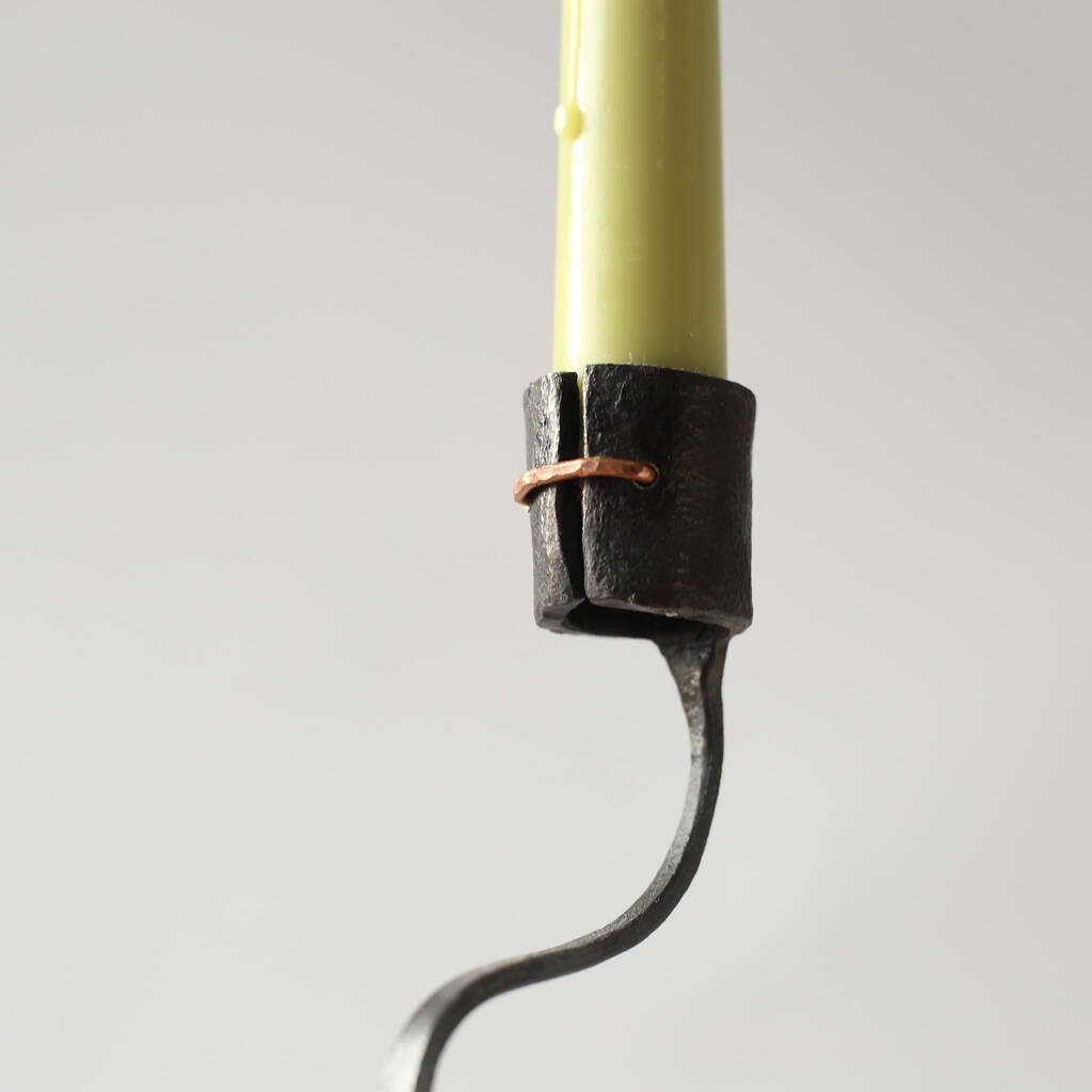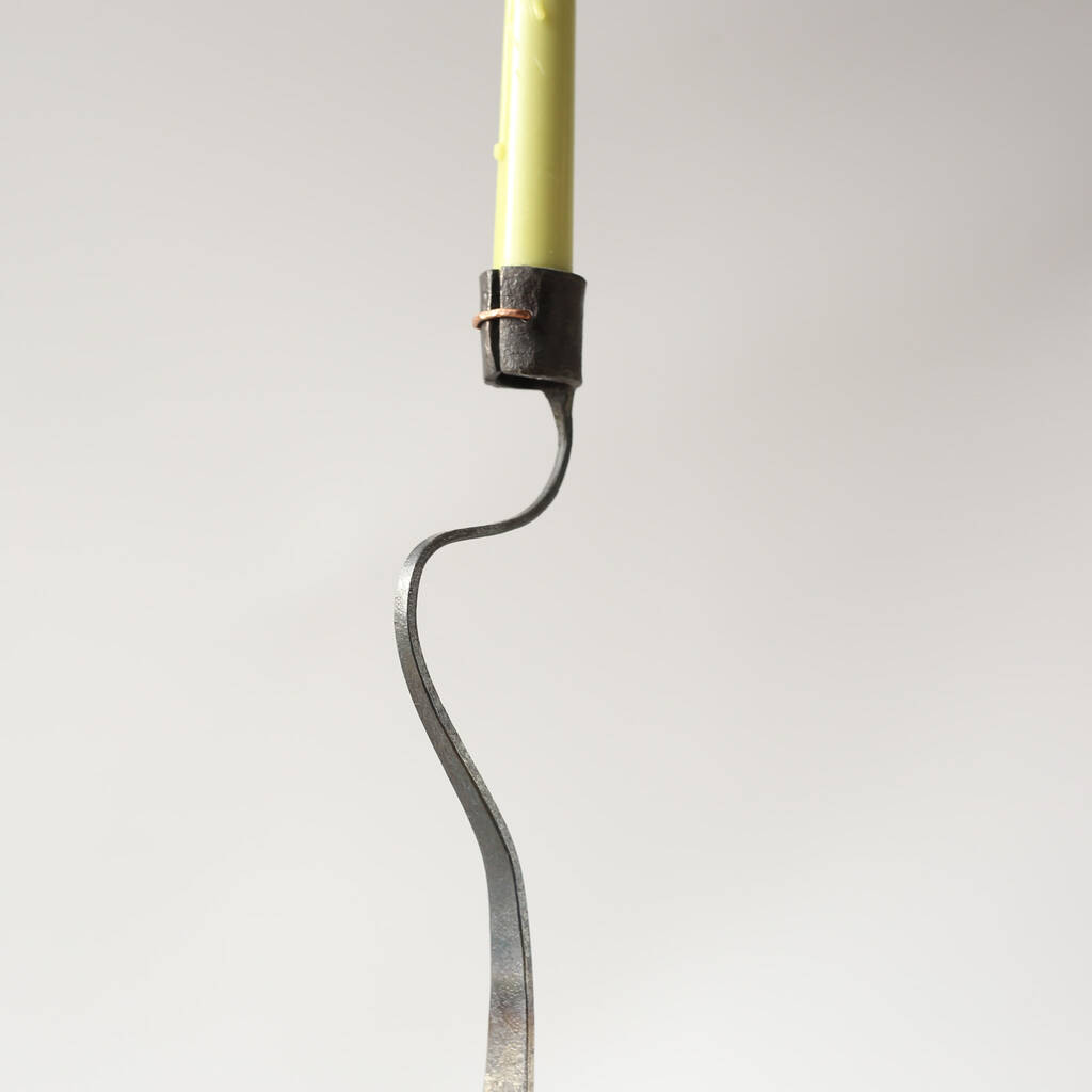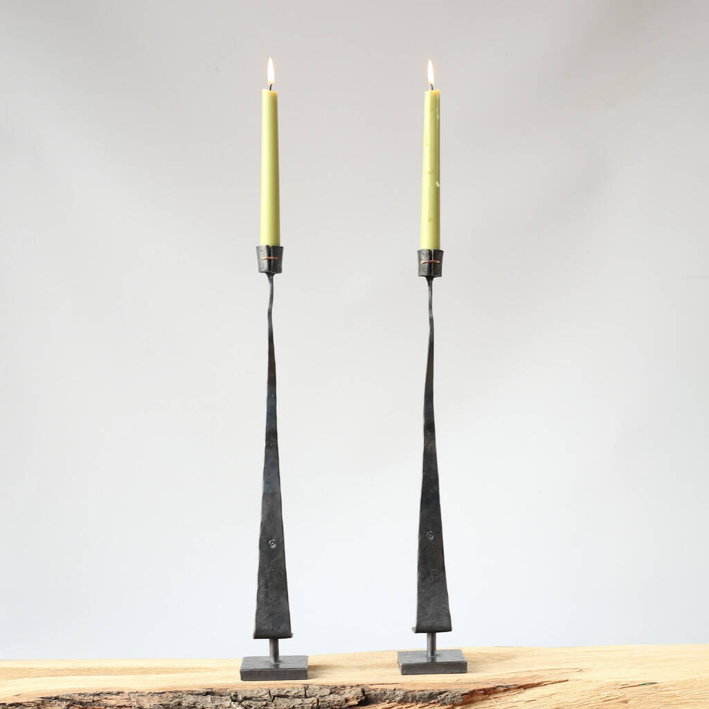 11th Anniversary Gift Tall Steel Elegant Taper Candle Holder. Hand Shaped Curved Handle Design