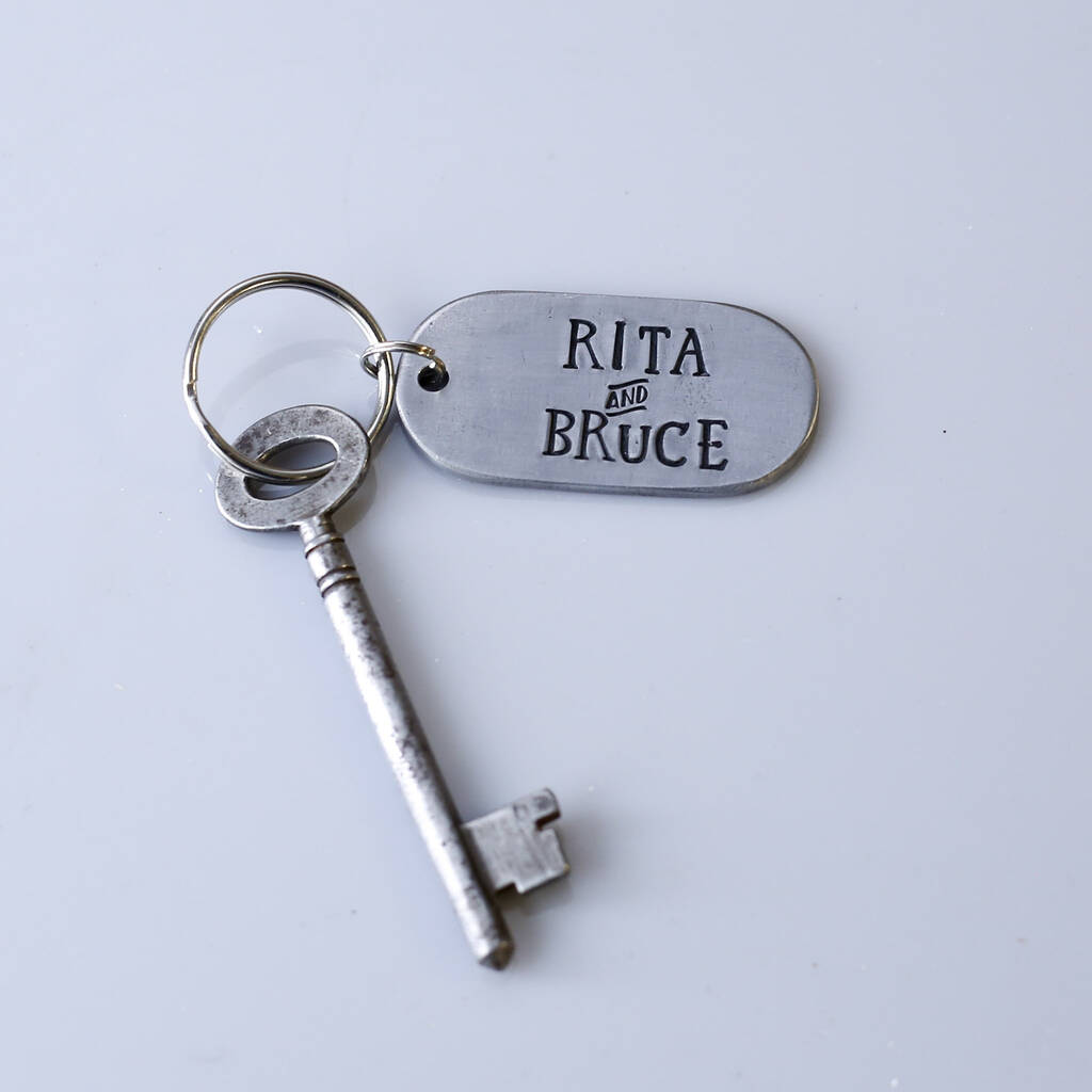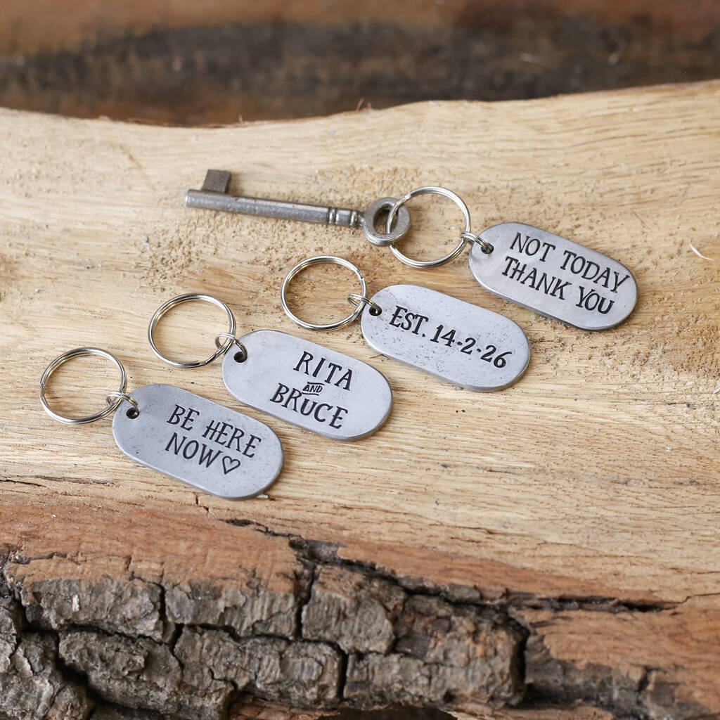 6th Anniversary Gift Custom Iron Keyring In Dog Tag Design