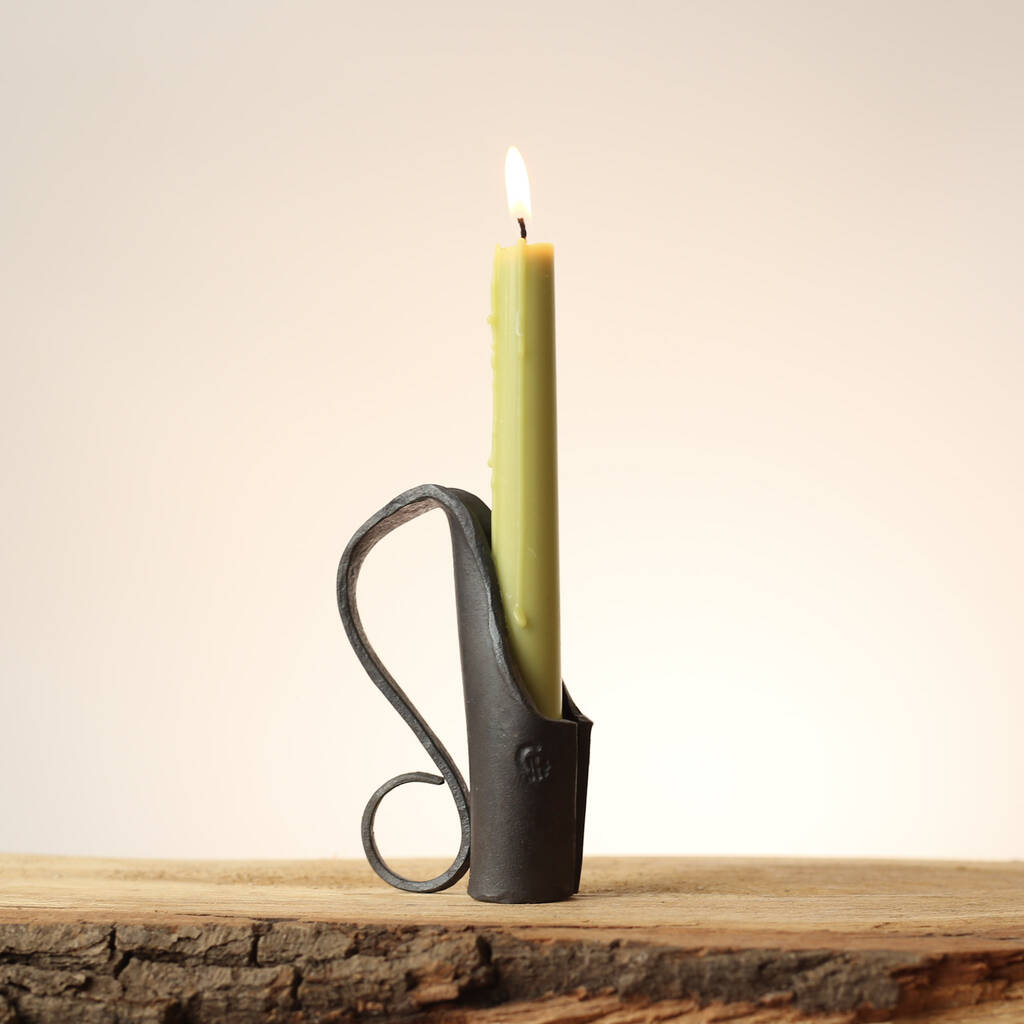 6th Iron Anniversary Gift Hand Forged Dinner Candle Holder With Curved Handle