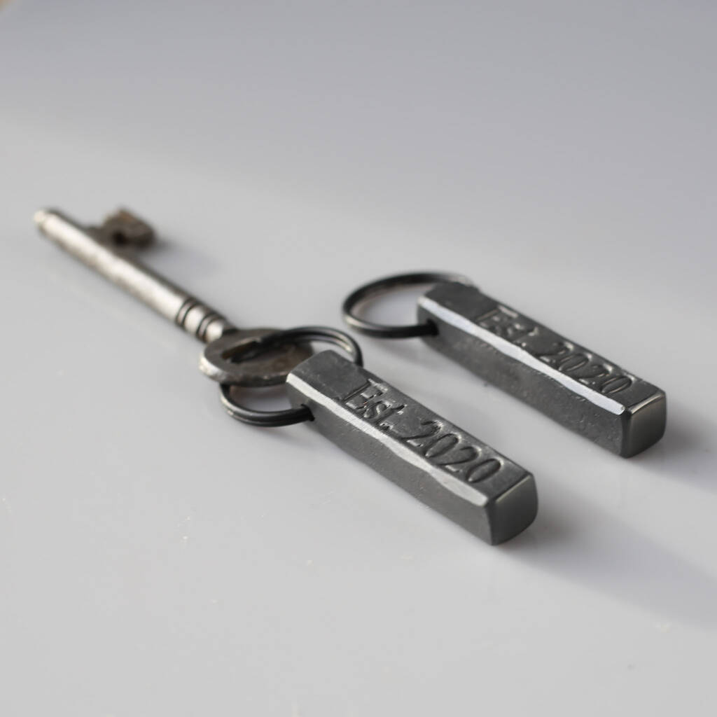 6th Anniversary Gift; Forged Dark Iron Bar Keyring