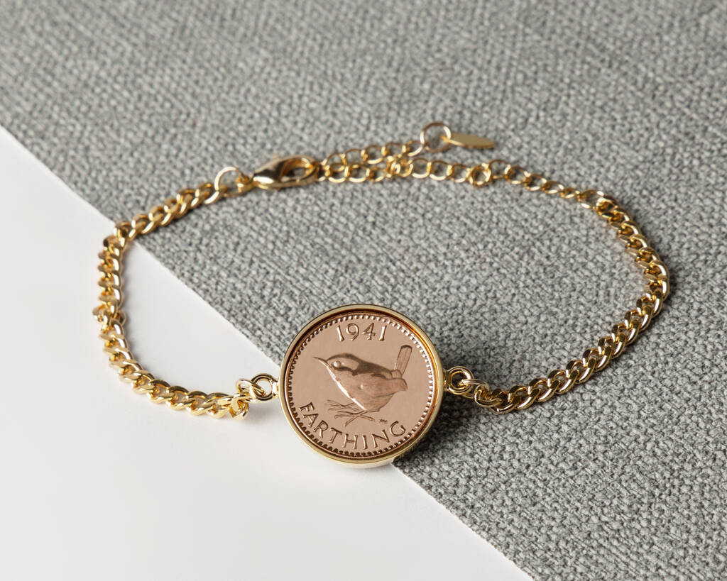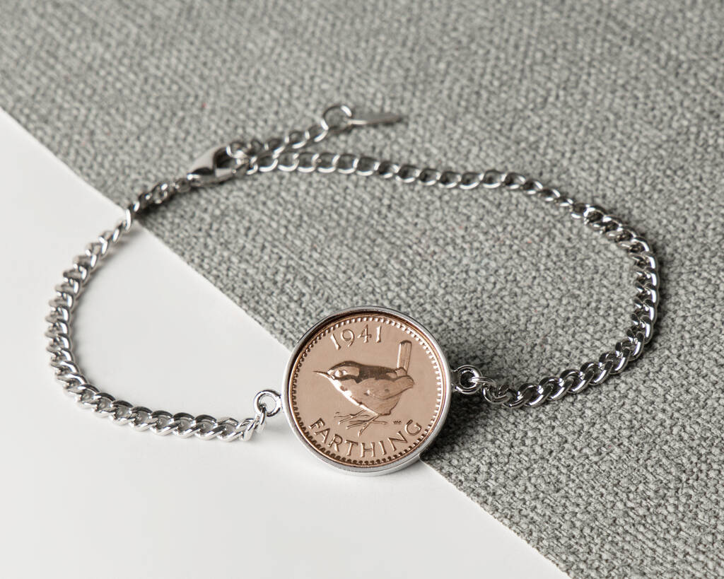 1941 85th Birthday Farthing Coin Chain Bracelet