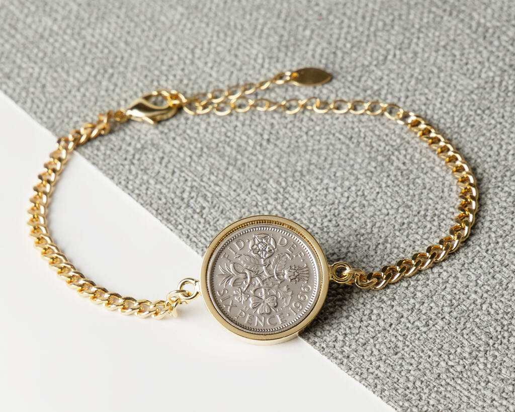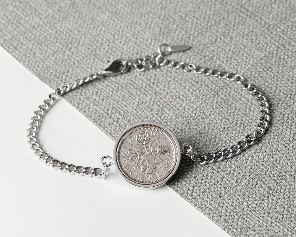 1966 60th Birthday Sixpence Coin Chain Bracelet